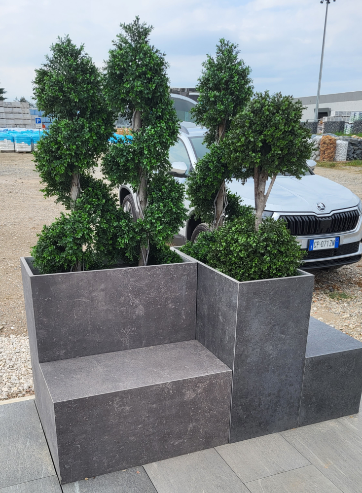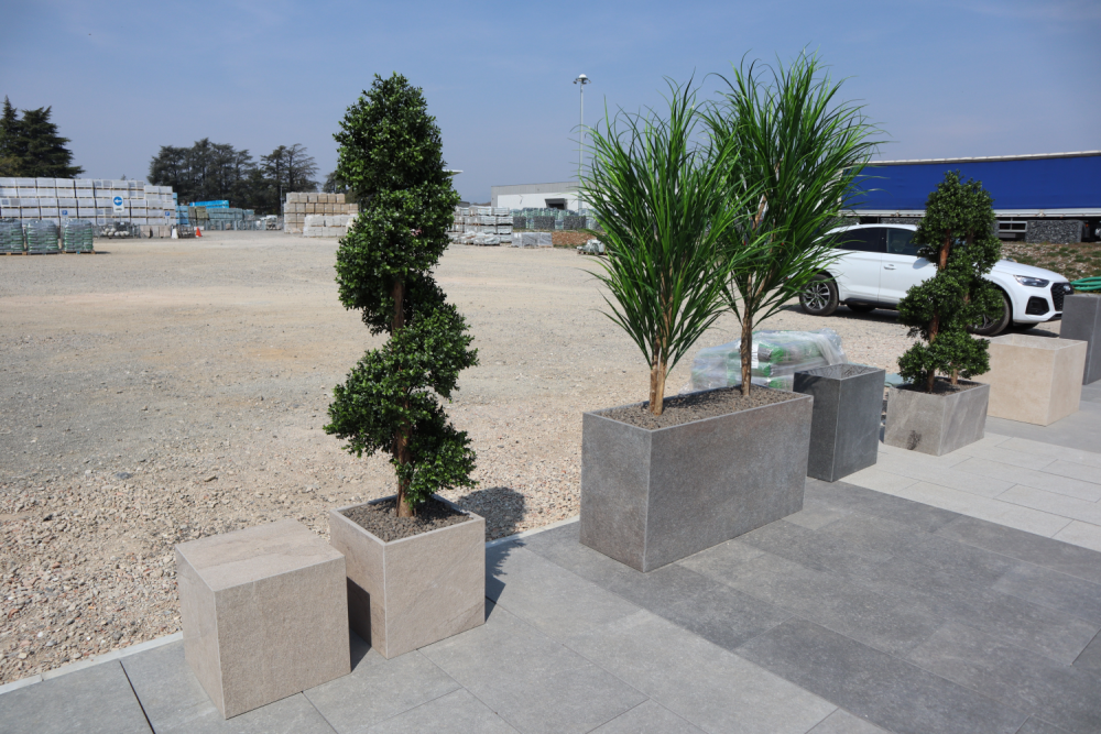 Kvetináče SUPREMA PREMIUM sú vyrobené zo sinterovaného kameňa s hrúbkou 2 cm. Hrany sú brúsené pod uhlom a bočné steny pevne zlepené pre čistý, moderný vzhľad. Kvetináče sú vybavené otvorom na odtok prebytočnej vody a sú dizajnovo kombinovateľné s keramickým nábytkom SOLIDA a COLONNE .